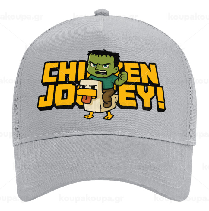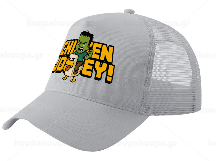 Chicken Jockey, Καπέλο Ενηλίκων Structured Trucker, με Δίχτυ, ΓΚΡΙ (100% ΒΑΜΒΑΚΕΡΟ, ΕΝΗΛΙΚΩΝ, UNISEX, ONE SIZE)