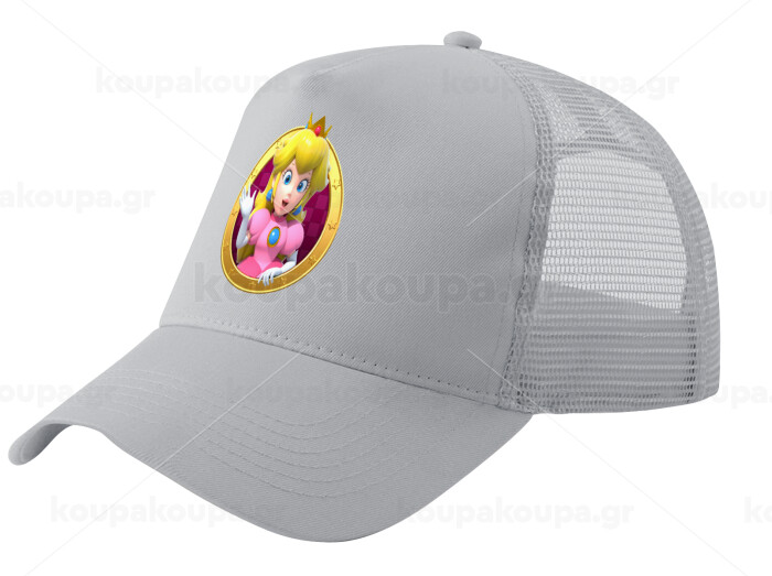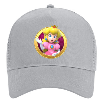 Princess Peach Toadstool, Καπέλο Ενηλίκων Structured Trucker, με Δίχτυ, ΓΚΡΙ (100% ΒΑΜΒΑΚΕΡΟ, ΕΝΗΛΙΚΩΝ, UNISEX, ONE SIZE)
