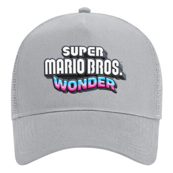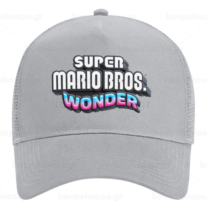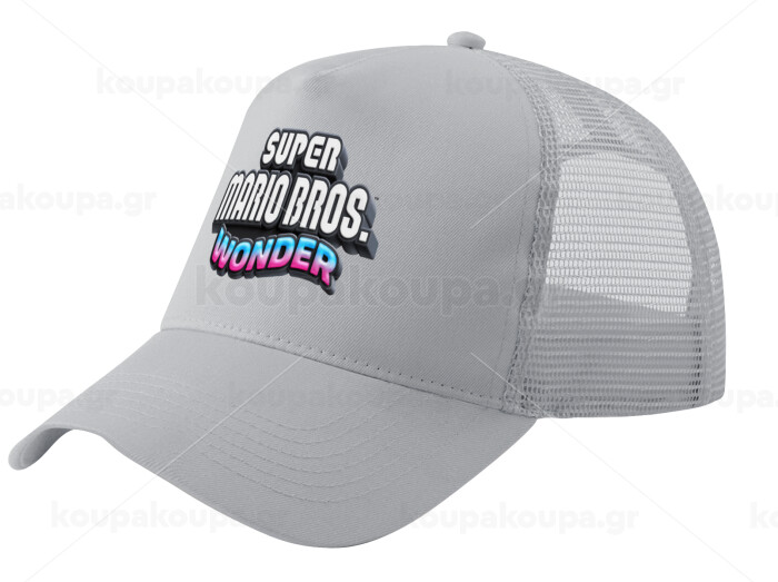Super mario wonder, Καπέλο Ενηλίκων Structured Trucker, με Δίχτυ, ΓΚΡΙ (100% ΒΑΜΒΑΚΕΡΟ, ΕΝΗΛΙΚΩΝ, UNISEX, ONE SIZE)