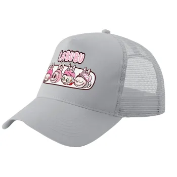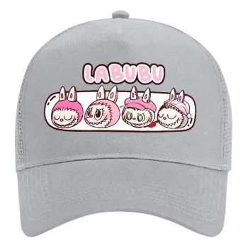 Labubu pink, Καπέλο Ενηλίκων Structured Trucker, με Δίχτυ, ΓΚΡΙ (100% ΒΑΜΒΑΚΕΡΟ, ΕΝΗΛΙΚΩΝ, UNISEX, ONE SIZE)