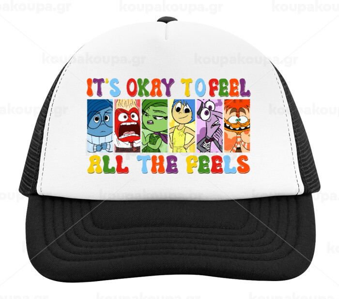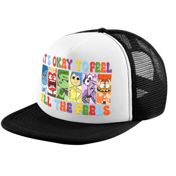 Inside Out It's Okay To Feel All The Feels , Καπέλο Ενηλίκων Soft Trucker με Δίχτυ Black/White (POLYESTER, ΕΝΗΛΙΚΩΝ, UNISEX, ONE SIZE)