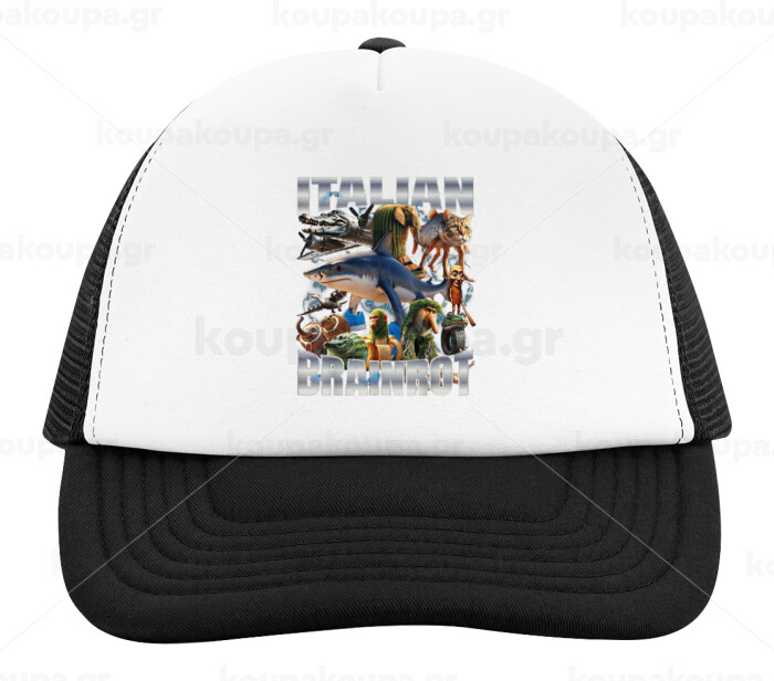 Italian Brainrot, Καπέλο Ενηλίκων Soft Trucker με Δίχτυ Black/White (POLYESTER, ΕΝΗΛΙΚΩΝ, UNISEX, ONE SIZE)