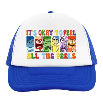 Inside Out It's Okay To Feel All The Feels , Καπέλο Ενηλίκων Soft Trucker με Δίχτυ Blue/White (POLYESTER, ΕΝΗΛΙΚΩΝ, UNISEX, ONE SIZE)