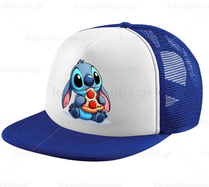 Stitch Pizza, Καπέλο Ενηλίκων Soft Trucker με Δίχτυ Blue/White (POLYESTER, ΕΝΗΛΙΚΩΝ, UNISEX, ONE SIZE)