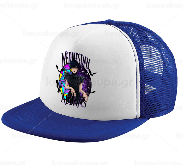 Wednesday Jenna Ortega, Καπέλο Ενηλίκων Soft Trucker με Δίχτυ Blue/White (POLYESTER, ΕΝΗΛΙΚΩΝ, UNISEX, ONE SIZE)