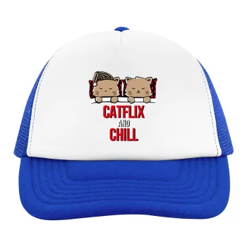 Catflix and Chill, Καπέλο Ενηλίκων Soft Trucker με Δίχτυ Blue/White (POLYESTER, ΕΝΗΛΙΚΩΝ, UNISEX, ONE SIZE)