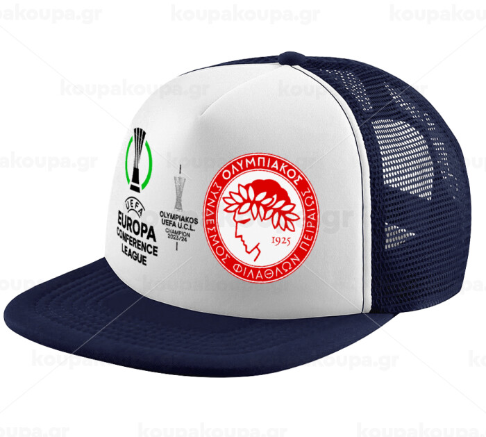 Ολυμπιακός νικητής UEFA Europa Conference League Champion 2023/24, Καπέλο Ενηλίκων Soft Trucker με Δίχτυ Dark Blue/White (POLYESTER, ΕΝΗΛΙΚΩΝ, UNISEX, ONE SIZE)