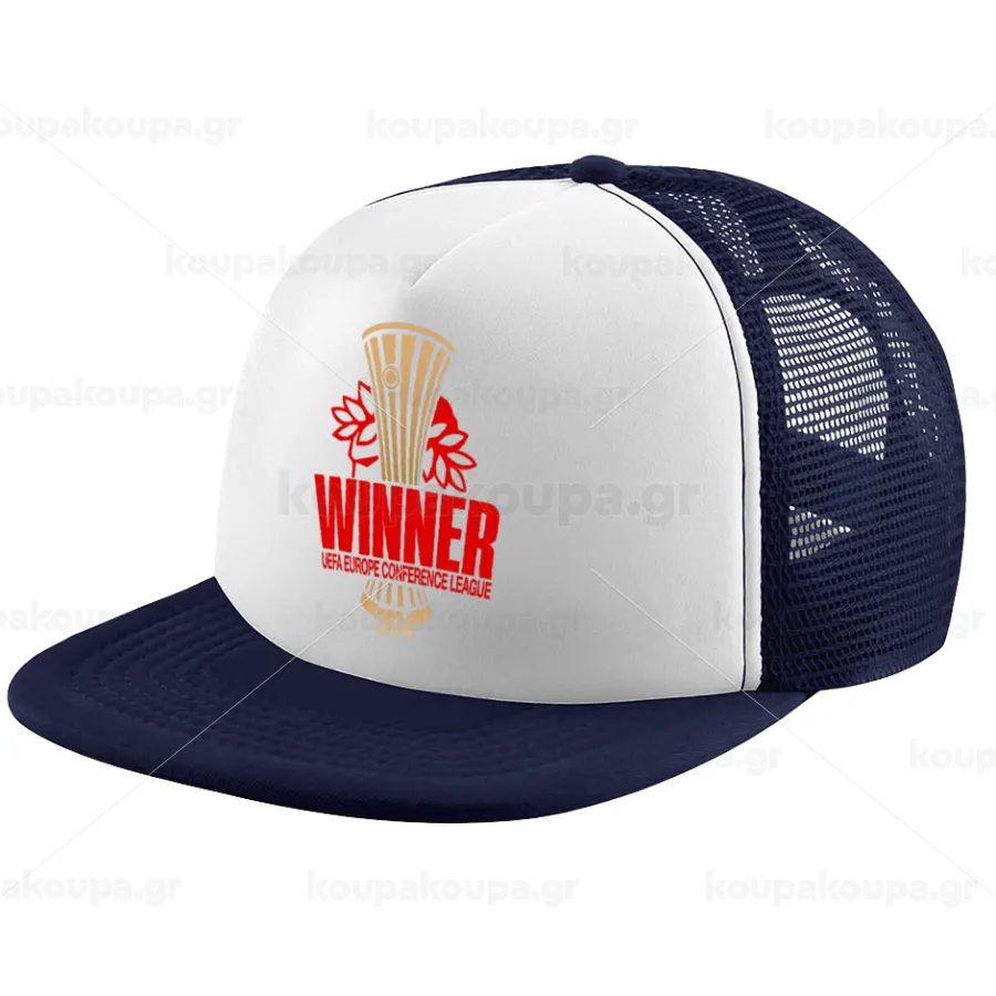 Europa Conference League WINNER, Καπέλο Ενηλίκων Soft Trucker με Δίχτυ Dark Blue/White (POLYESTER, ΕΝΗΛΙΚΩΝ, UNISEX, ONE SIZE)