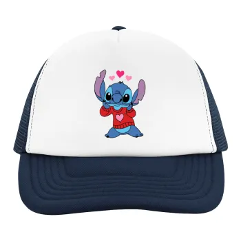 Stitch heart, Καπέλο Ενηλίκων Soft Trucker με Δίχτυ Dark Blue/White (POLYESTER, ΕΝΗΛΙΚΩΝ, UNISEX, ONE SIZE)