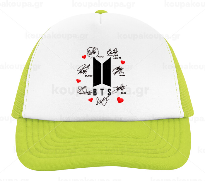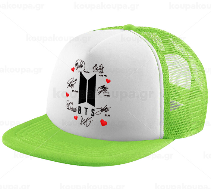 BTS signs, Καπέλο Ενηλίκων Soft Trucker με Δίχτυ ΠΡΑΣΙΝΟ/ΛΕΥΚΟ (POLYESTER, ΕΝΗΛΙΚΩΝ, ONE SIZE)