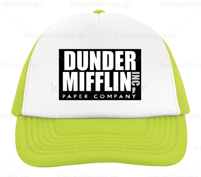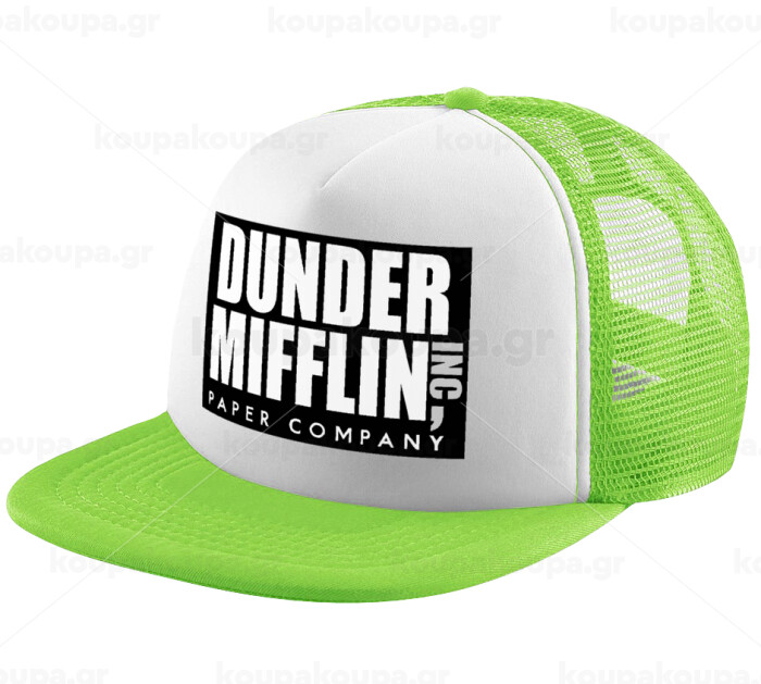 Dunder Mifflin, Inc Paper Company, Καπέλο Ενηλίκων Soft Trucker με Δίχτυ ΠΡΑΣΙΝΟ/ΛΕΥΚΟ (POLYESTER, ΕΝΗΛΙΚΩΝ, ONE SIZE)
