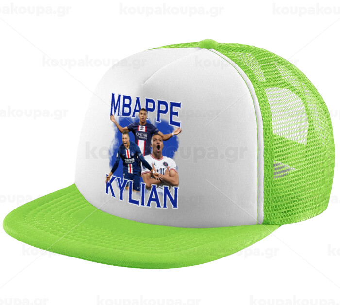 Kylian mbappe, Καπέλο Ενηλίκων Soft Trucker με Δίχτυ ΠΡΑΣΙΝΟ/ΛΕΥΚΟ (POLYESTER, ΕΝΗΛΙΚΩΝ, ONE SIZE)