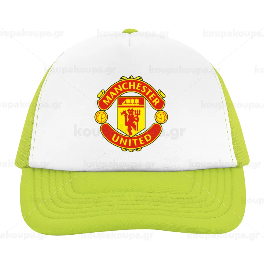 Manchester United F.C., Καπέλο Ενηλίκων Soft Trucker με Δίχτυ ΠΡΑΣΙΝΟ/ΛΕΥΚΟ (POLYESTER, ΕΝΗΛΙΚΩΝ, ONE SIZE)