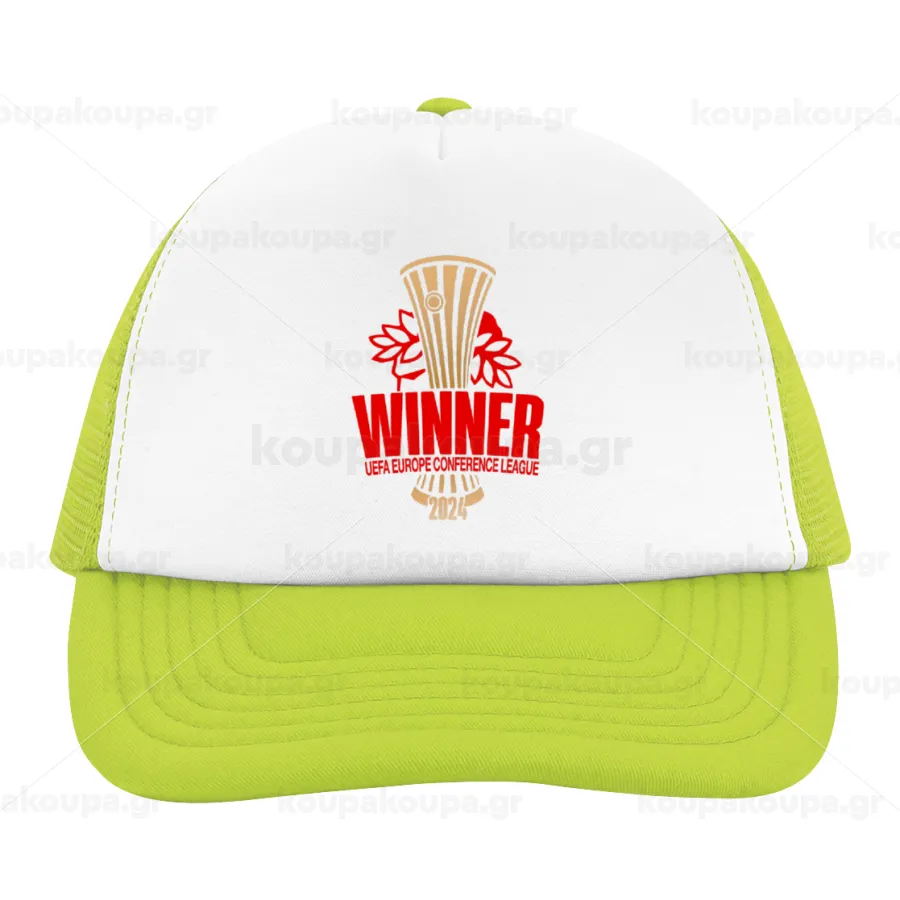 Europa Conference League WINNER, Καπέλο Ενηλίκων Soft Trucker με Δίχτυ ΠΡΑΣΙΝΟ/ΛΕΥΚΟ (POLYESTER, ΕΝΗΛΙΚΩΝ, ONE SIZE)