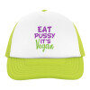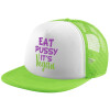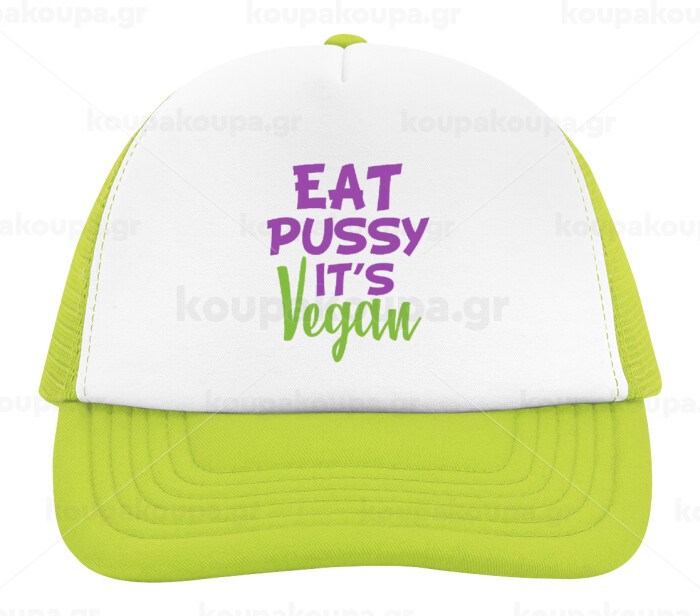 EAT pussy it's vegan, Καπέλο Ενηλίκων Soft Trucker με Δίχτυ ΠΡΑΣΙΝΟ/ΛΕΥΚΟ (POLYESTER, ΕΝΗΛΙΚΩΝ, ONE SIZE)