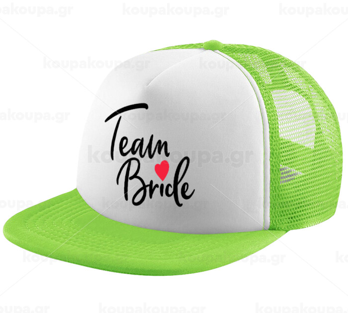 Team Bride red heart, Καπέλο Ενηλίκων Soft Trucker με Δίχτυ ΠΡΑΣΙΝΟ/ΛΕΥΚΟ (POLYESTER, ΕΝΗΛΙΚΩΝ, ONE SIZE)