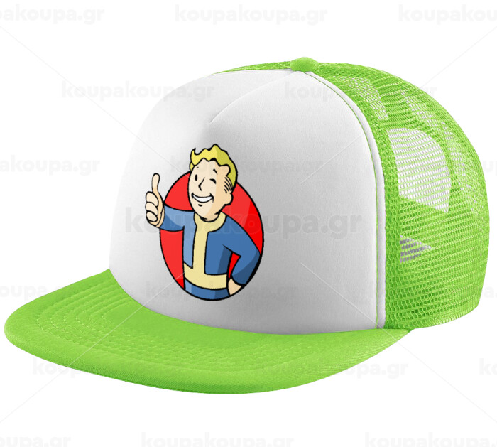 Fallout Vault Boy, Καπέλο Ενηλίκων Soft Trucker με Δίχτυ ΠΡΑΣΙΝΟ/ΛΕΥΚΟ (POLYESTER, ΕΝΗΛΙΚΩΝ, ONE SIZE)
