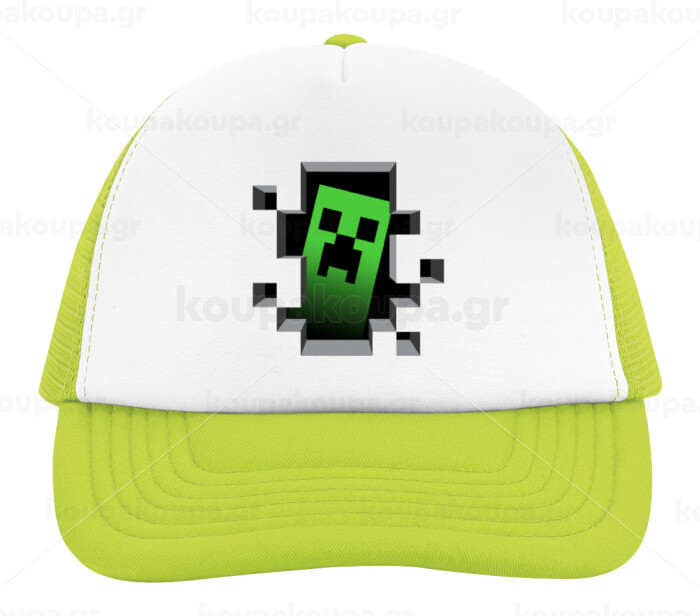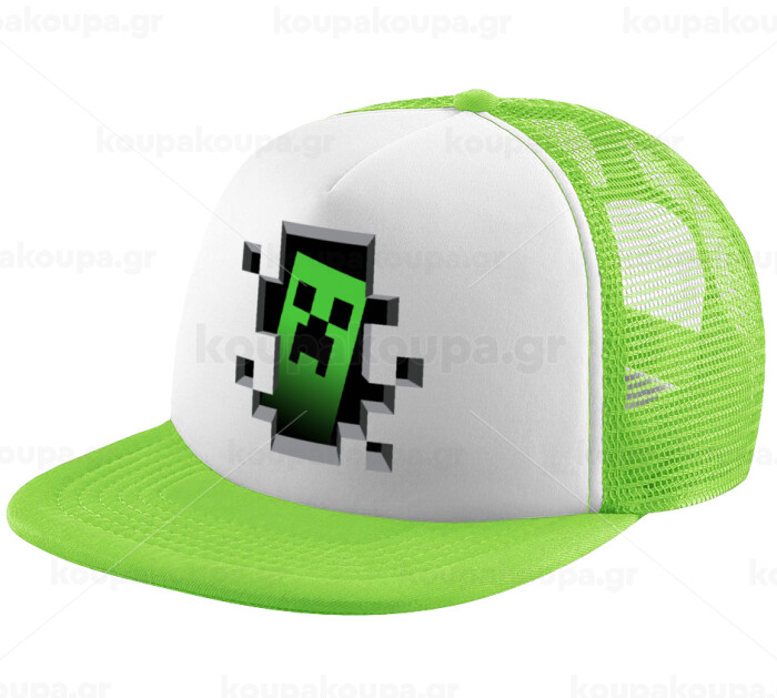 Minecraft creeper, Καπέλο Ενηλίκων Soft Trucker με Δίχτυ ΠΡΑΣΙΝΟ/ΛΕΥΚΟ (POLYESTER, ΕΝΗΛΙΚΩΝ, ONE SIZE)