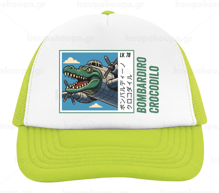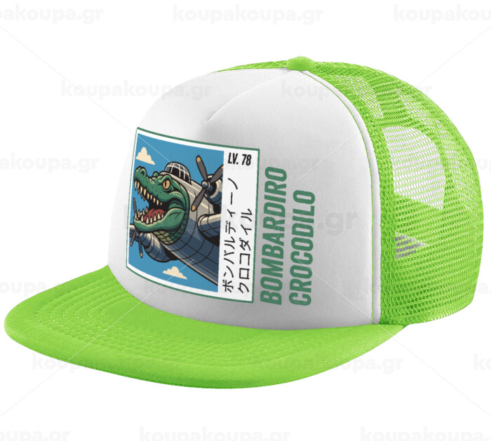 Bombardiro Crocodilo, Καπέλο Ενηλίκων Soft Trucker με Δίχτυ ΠΡΑΣΙΝΟ/ΛΕΥΚΟ (POLYESTER, ΕΝΗΛΙΚΩΝ, ONE SIZE)