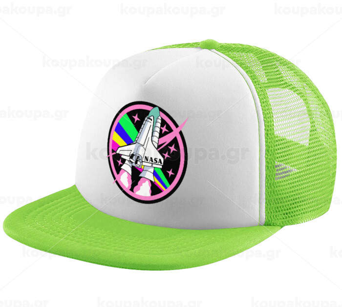NASA pink, Καπέλο Ενηλίκων Soft Trucker με Δίχτυ ΠΡΑΣΙΝΟ/ΛΕΥΚΟ (POLYESTER, ΕΝΗΛΙΚΩΝ, ONE SIZE)
