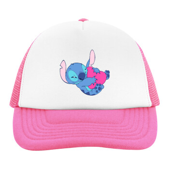 Lilo & Stitch hugs and hearts, Καπέλο Ενηλίκων Soft Trucker με Δίχτυ Pink/White (POLYESTER, ΕΝΗΛΙΚΩΝ, UNISEX, ONE SIZE)
