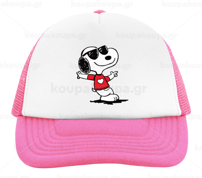 Snoopy καρδούλα, Καπέλο Ενηλίκων Soft Trucker με Δίχτυ Pink/White (POLYESTER, ΕΝΗΛΙΚΩΝ, UNISEX, ONE SIZE)