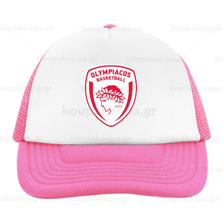Olympiacos B.C., Καπέλο Ενηλίκων Soft Trucker με Δίχτυ Pink/White (POLYESTER, ΕΝΗΛΙΚΩΝ, UNISEX, ONE SIZE)