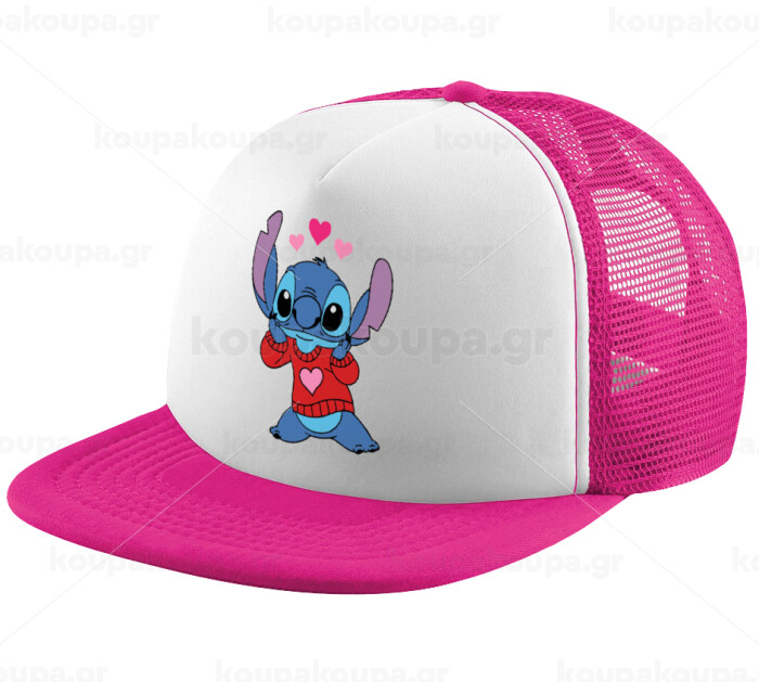 Stitch heart, Καπέλο Ενηλίκων Soft Trucker με Δίχτυ Pink/White (POLYESTER, ΕΝΗΛΙΚΩΝ, UNISEX, ONE SIZE)