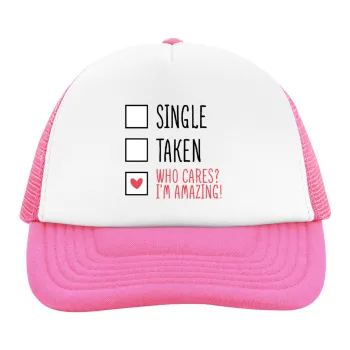 Single, Taken, Who cares i'm amazing, Καπέλο Ενηλίκων Soft Trucker με Δίχτυ Pink/White (POLYESTER, ΕΝΗΛΙΚΩΝ, UNISEX, ONE SIZE)