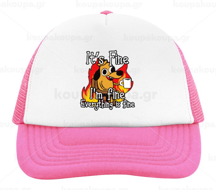 It's Fine I'm Fine Everything Is Fine, Καπέλο Ενηλίκων Soft Trucker με Δίχτυ Pink/White (POLYESTER, ΕΝΗΛΙΚΩΝ, UNISEX, ONE SIZE)