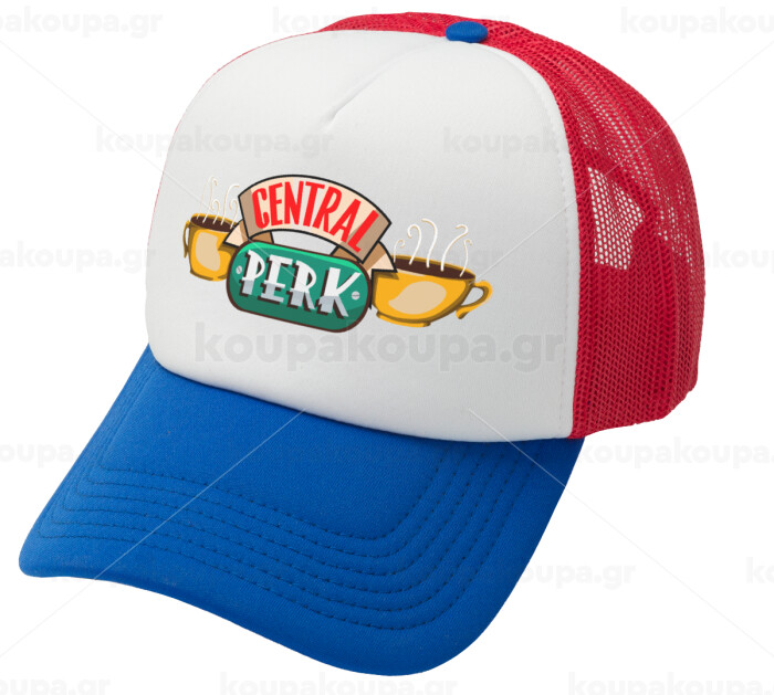 Central perk, Καπέλο Ενηλίκων Soft Trucker με Δίχτυ Red/Blue/White (POLYESTER, ΕΝΗΛΙΚΩΝ, UNISEX, ONE SIZE)