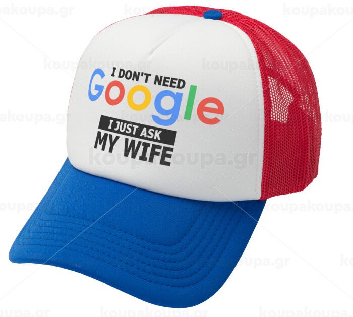 I don't need Google, just ask my WIFE, Καπέλο Ενηλίκων Soft Trucker με Δίχτυ Red/Blue/White (POLYESTER, ΕΝΗΛΙΚΩΝ, UNISEX, ONE SIZE)