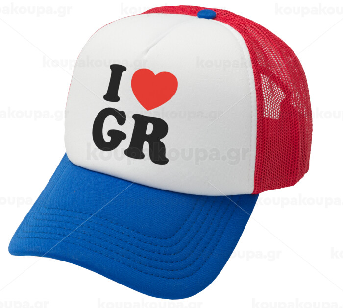 I Love GR, Καπέλο Ενηλίκων Soft Trucker με Δίχτυ Red/Blue/White (POLYESTER, ΕΝΗΛΙΚΩΝ, UNISEX, ONE SIZE)