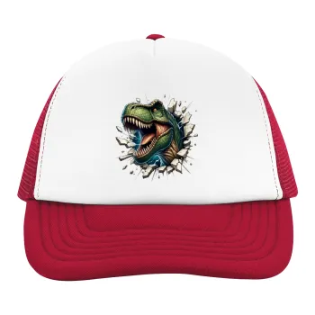 Dinosaur break wall, Καπέλο Ενηλίκων Soft Trucker με Δίχτυ Red/White (POLYESTER, ΕΝΗΛΙΚΩΝ, UNISEX, ONE SIZE)