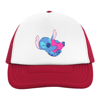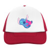 Lilo & Stitch hugs and hearts, Καπέλο Ενηλίκων Soft Trucker με Δίχτυ Red/White (POLYESTER, ΕΝΗΛΙΚΩΝ, UNISEX, ONE SIZE)