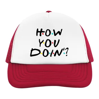Friends How You Doin'?, Καπέλο Ενηλίκων Soft Trucker με Δίχτυ Red/White (POLYESTER, ΕΝΗΛΙΚΩΝ, UNISEX, ONE SIZE)