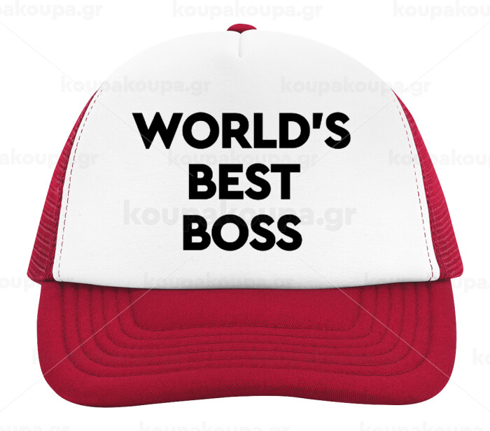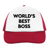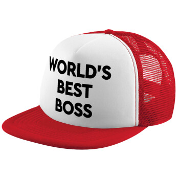 World's best boss, Καπέλο Ενηλίκων Soft Trucker με Δίχτυ Red/White (POLYESTER, ΕΝΗΛΙΚΩΝ, UNISEX, ONE SIZE)