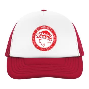 Ολυμπιακός, Καπέλο Ενηλίκων Soft Trucker με Δίχτυ Red/White (POLYESTER, ΕΝΗΛΙΚΩΝ, UNISEX, ONE SIZE)