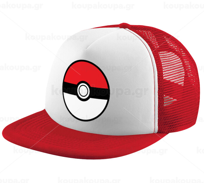 Pokemon ball, Καπέλο Ενηλίκων Soft Trucker με Δίχτυ Red/White (POLYESTER, ΕΝΗΛΙΚΩΝ, UNISEX, ONE SIZE)