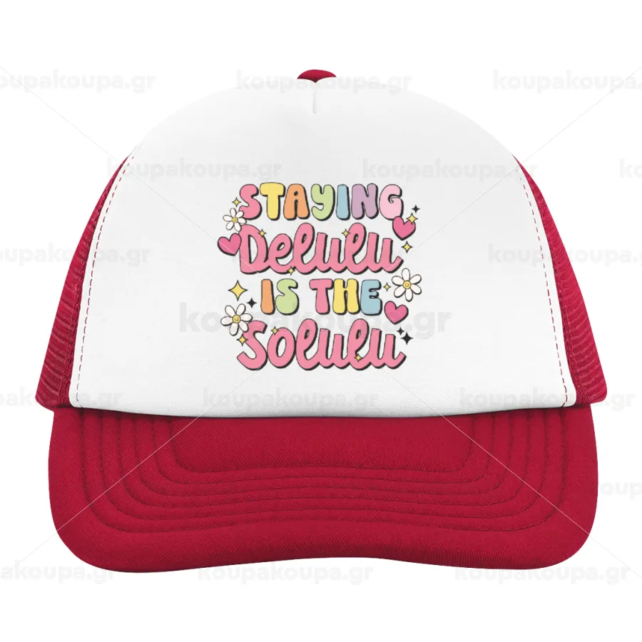 Delulu, Καπέλο Ενηλίκων Soft Trucker με Δίχτυ Red/White (POLYESTER, ΕΝΗΛΙΚΩΝ, UNISEX, ONE SIZE)
