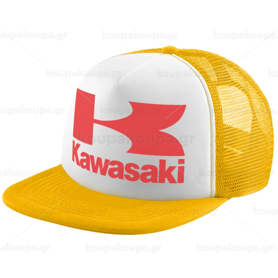 Kawasaki, Καπέλο Ενηλίκων Soft Trucker με Δίχτυ Κίτρινο/White (POLYESTER, ΕΝΗΛΙΚΩΝ, UNISEX, ONE SIZE)