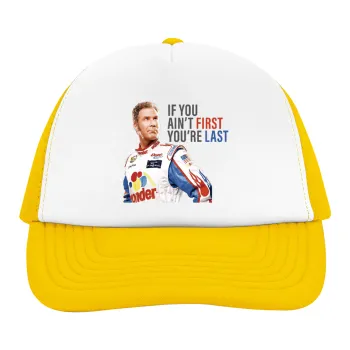 If You Ain't First You're Last Ricky Bobby, Talladega Nights, Καπέλο Ενηλίκων Soft Trucker με Δίχτυ Κίτρινο/White (POLYESTER, ΕΝΗΛΙΚΩΝ, UNISEX, ONE SIZE)