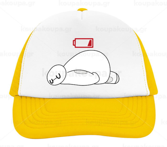 Baymax battery low, Καπέλο Ενηλίκων Soft Trucker με Δίχτυ Κίτρινο/White (POLYESTER, ΕΝΗΛΙΚΩΝ, UNISEX, ONE SIZE)