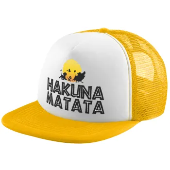 Hakuna Matata, Καπέλο Ενηλίκων Soft Trucker με Δίχτυ Κίτρινο/White (POLYESTER, ΕΝΗΛΙΚΩΝ, UNISEX, ONE SIZE)