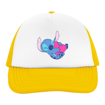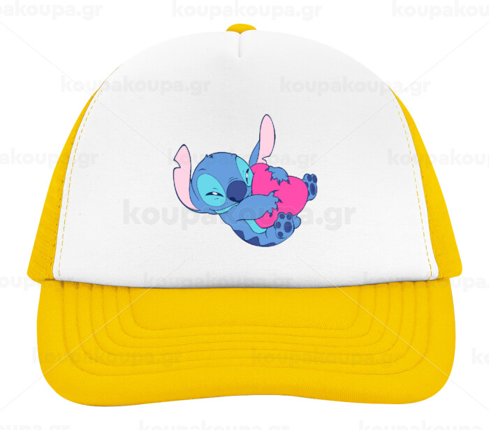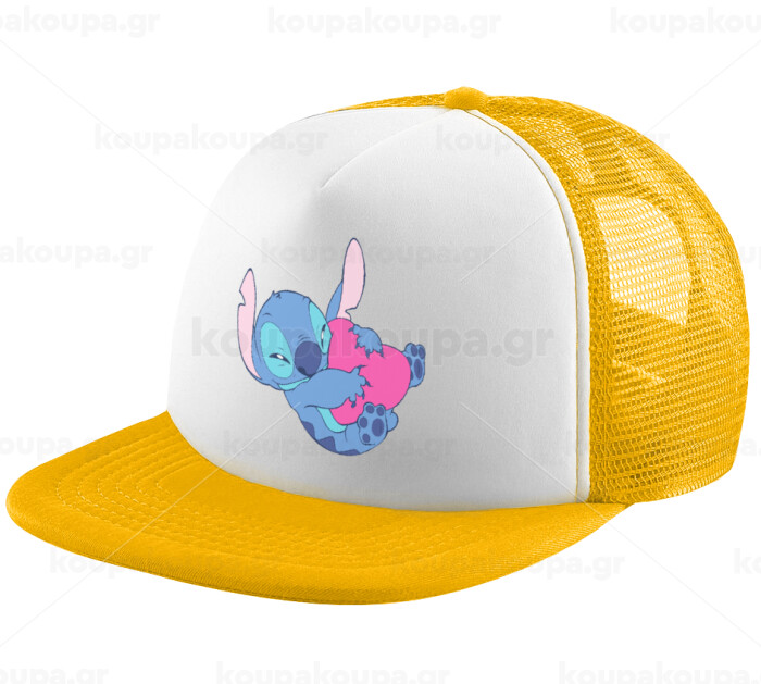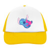 Lilo & Stitch hugs and hearts, Καπέλο Ενηλίκων Soft Trucker με Δίχτυ Κίτρινο/White (POLYESTER, ΕΝΗΛΙΚΩΝ, UNISEX, ONE SIZE)
