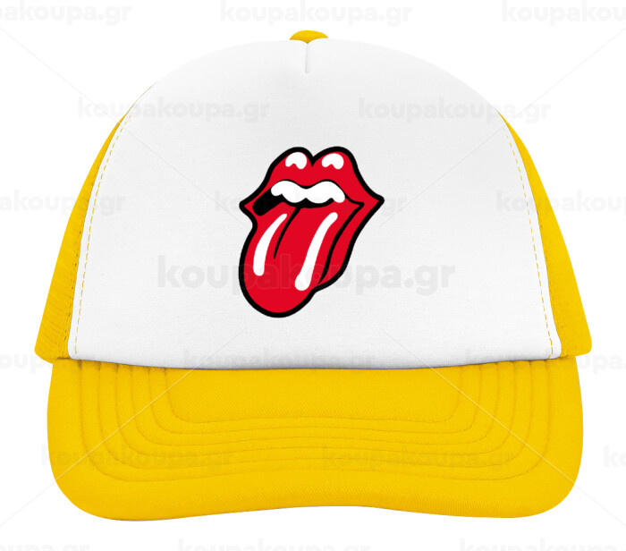 Rolling Stones Kiss, Καπέλο Ενηλίκων Soft Trucker με Δίχτυ Κίτρινο/White (POLYESTER, ΕΝΗΛΙΚΩΝ, UNISEX, ONE SIZE)