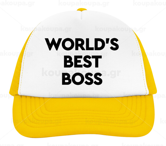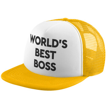 World's best boss, Καπέλο Ενηλίκων Soft Trucker με Δίχτυ Κίτρινο/White (POLYESTER, ΕΝΗΛΙΚΩΝ, UNISEX, ONE SIZE)