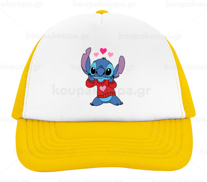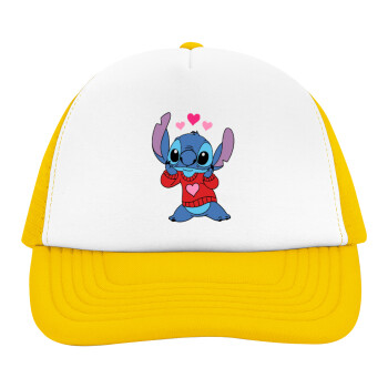 Stitch heart, Καπέλο Ενηλίκων Soft Trucker με Δίχτυ Κίτρινο/White (POLYESTER, ΕΝΗΛΙΚΩΝ, UNISEX, ONE SIZE)