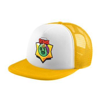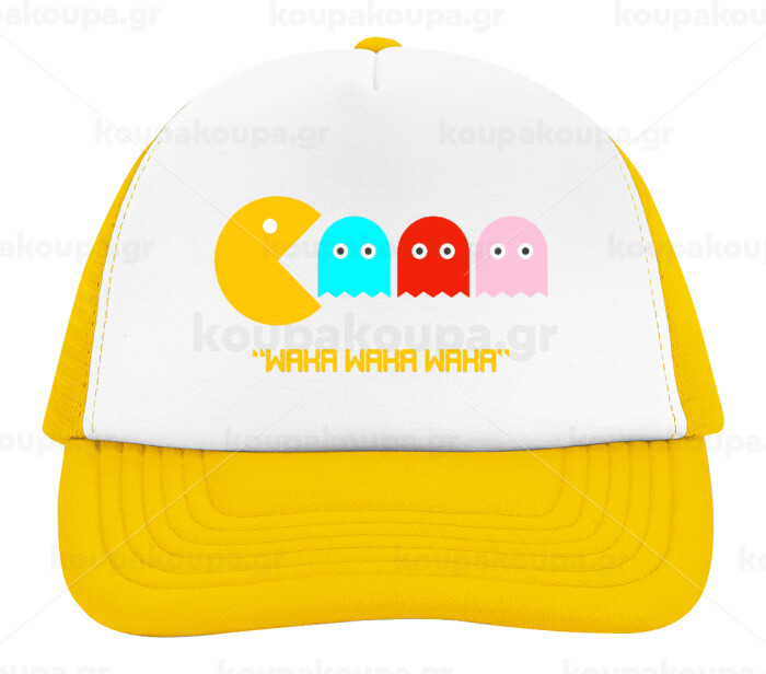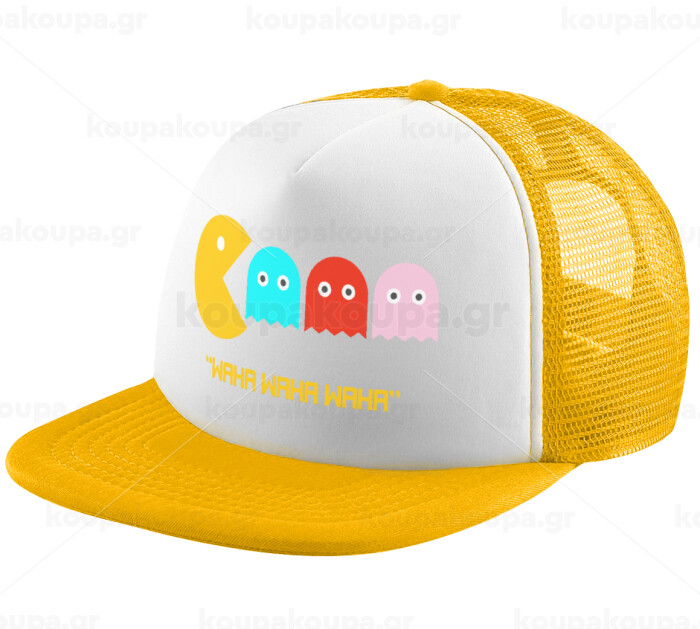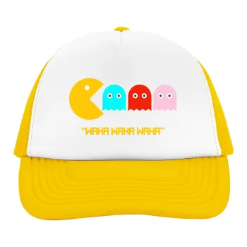 Pacman waka waka waka, Καπέλο Ενηλίκων Soft Trucker με Δίχτυ Κίτρινο/White (POLYESTER, ΕΝΗΛΙΚΩΝ, UNISEX, ONE SIZE)