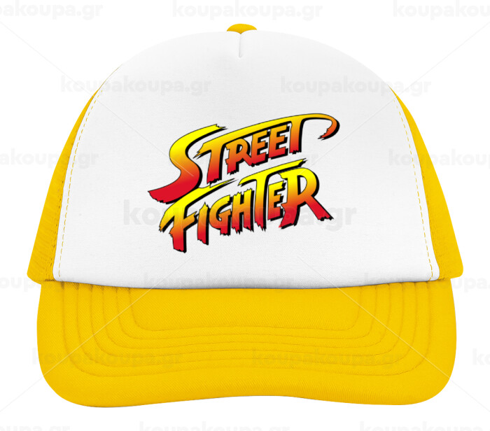 Street fighter, Καπέλο Ενηλίκων Soft Trucker με Δίχτυ Κίτρινο/White (POLYESTER, ΕΝΗΛΙΚΩΝ, UNISEX, ONE SIZE)